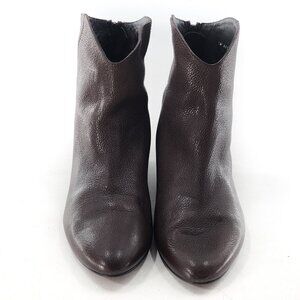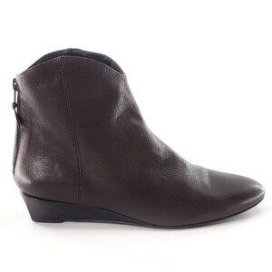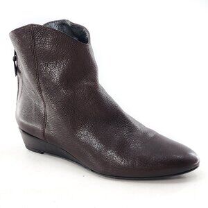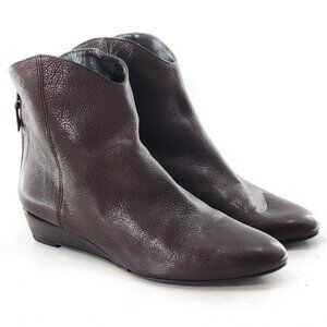 STUART WEITZMAN Almond Toe Brown Leather Low Wedge Ankle Booties Zipper Closure Comfort Shoes Work Casual Office Fall Winter Going Out
