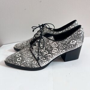 STUART WEITZMAN Animal Print Pointed Toe Chunky Heel Oxford 9.5M Shoes Lace Up