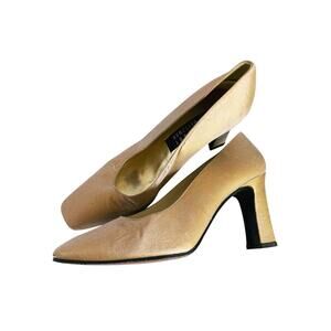 STUART WEITZMAN Anna Gold Matte Shimmer Pumps Wedding Champagne 8 Event Vintage