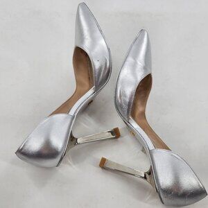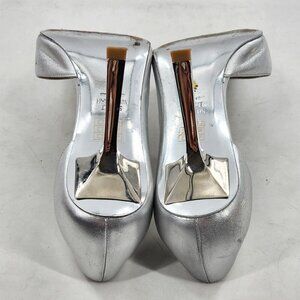 STUART WEITZMAN Anny X Heel 100 Pump Silver Leather Pointed Toe