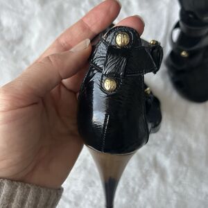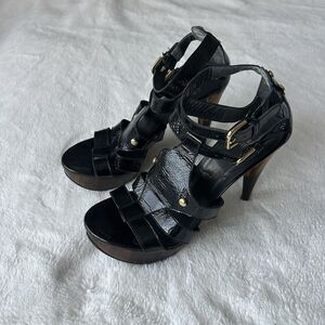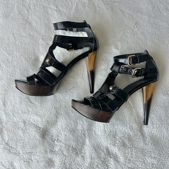 STUART WEITZMAN BLACK PATENT GLADIATOR PLATFORM SANDALS SZ 8