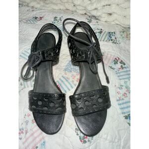 STUART WEITZMAN BLACK STUDDED PERFORATED SANDALS W/TIE 7.5N GHILLIE