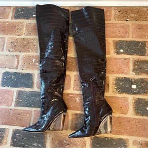 STUART WEITZMAN BURGUNDY LUCITE 100 WEDGE BOOT NWOT Size 7.5