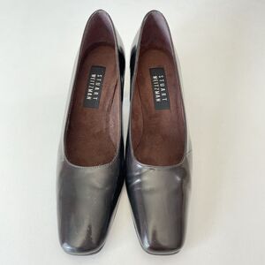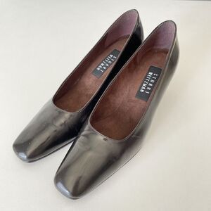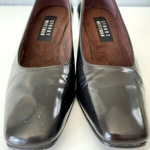 STUART WEITZMAN Black Leather Block Heels 2-3/8” Women’s Size 8 Made In Spain