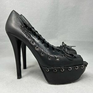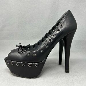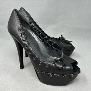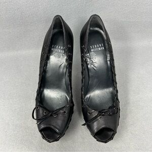 STUART WEITZMAN Black Leather Bow Toe Open Toe Platform Heels, Women’s size 6M.