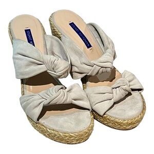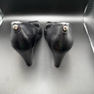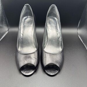 STUART WEITZMAN Black Leather Peep Toe Wedge Heels Size 9.5 M JW26244