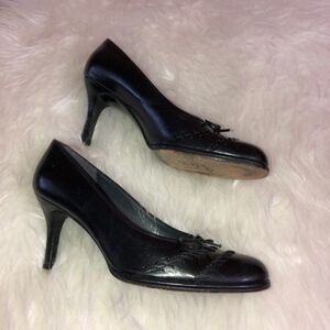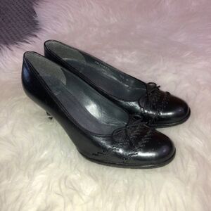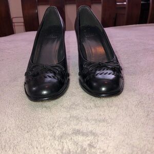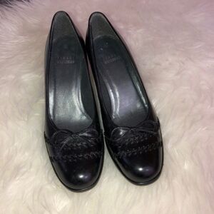 STUART WEITZMAN Black Leather Pump Heel Shoes with bow Size 5.5 M. Very good condition, no rips, no tears, no stains. Round toe. They have been cleaned and sanitized.