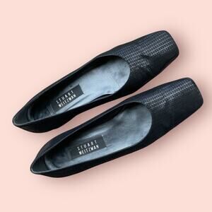STUART WEITZMAN Black Lines Suede Vintage 90s Low Heel Pumps Square Toe Sz 9.5
