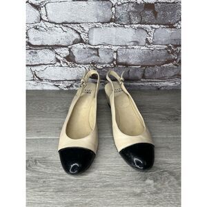 The product is a pair of Stuart Weitzman black patent cap blush pink leather ankle strap wedges for women in size 7M. The sandals feature a colorblock pattern with a buckle closure and a low heel style. Made from leather with a patent leather outsole, they offer arch support and cushions for comfort. The wedges are designed for various occasions such as parties, casual outings, or formal events. With a stylish slingback style and adjustable straps, these sandals are perfect for the summer, fall, and spring seasons, making them a versatile addition to any wardrobe.