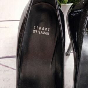 STUART WEITZMAN Black Patent Leather Peep-Toe Woven High Heel Pumps size 9.5