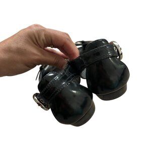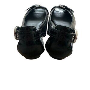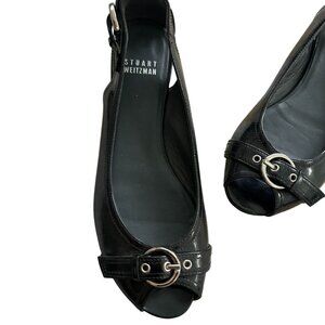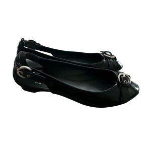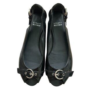 STUART WEITZMAN Black Patent Leather Peeptoe Buckle Flats Size 6.5