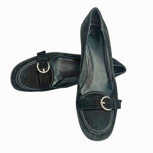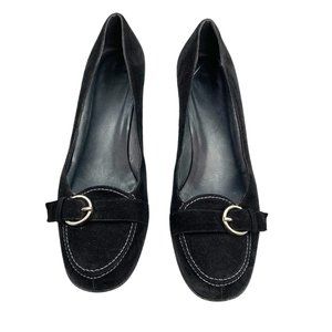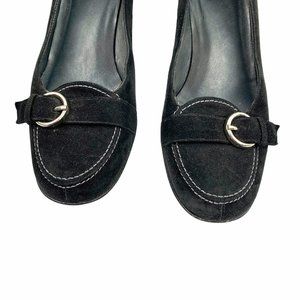 STUART WEITZMAN Black Suede Buckle Vamp Kitten Heels
