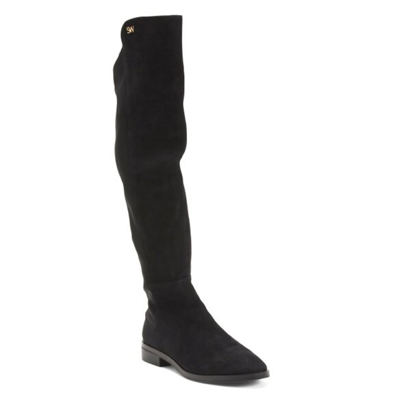 STUART WEITZMAN Black Suede Xcurve 85 Slouch Boots