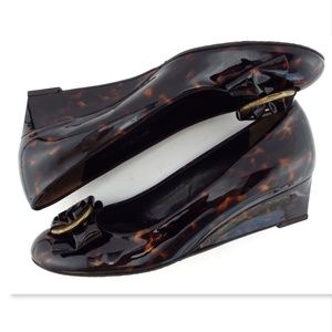 STUART WEITZMAN Bow Tortoise Patent Wedge Heel 8.5