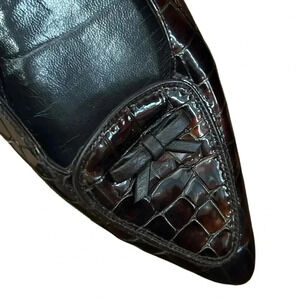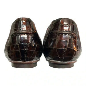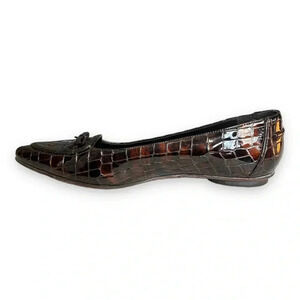 STUART WEITZMAN Brown Patent Croc Embossed Flats w/ Bow Accent 7.5M