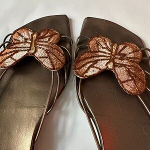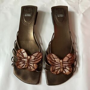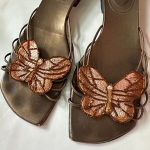 STUART WEITZMAN Butterfly Beaded Mule Sandals 10 Bronze Fairycore Coquette VTG