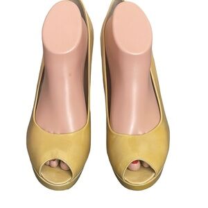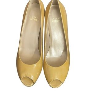 STUART WEITZMAN Caramel Nude Open toe patent leather platform pumps size 9.5M