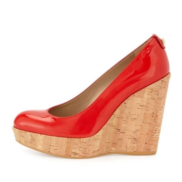STUART WEITZMAN Corkswoon Patent Wedge Pump Pimento Size 8 Medium