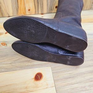 STUART WEITZMAN Crocodile Embossed Brown Leather Hidden Wedge Boots 7.5