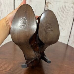 STUART WEITZMAN Elegant Brown Patent Leather Women's peep toe 4” Heels 8M GUC