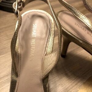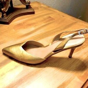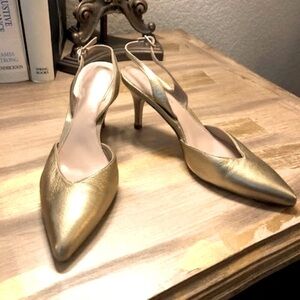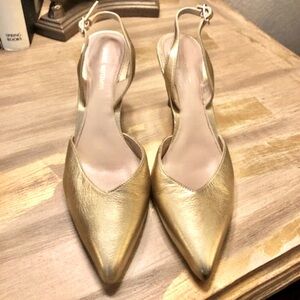 STUART WEITZMAN Eva Gold Leather Slingback Pumps SZ 5.5 MSRP $525