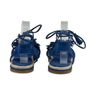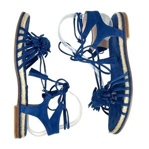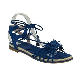 STUART WEITZMAN FLOWERPOT BLUE SANDALS FRINGE KNOT ESPADRILLE ANKLE WRAP SANDALS