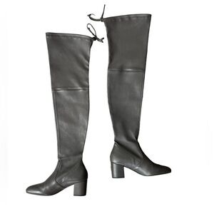 STUART WEITZMAN Genna 60 Leather Thigh Boots Dark Gray Size 7