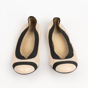 STUART WEITZMAN Giveable Leather Ballet Flats Cream & Black Size 6 M
