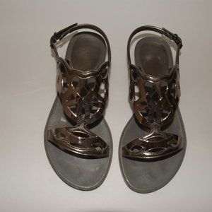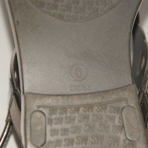 STUART WEITZMAN Graphite Silver Gelfisher Flat Slingback Sandals sz 6 Women's