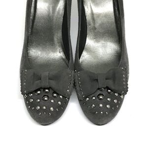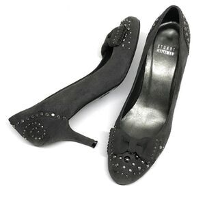 STUART WEITZMAN Gray Suede Leather Studded Pumps Heels with Bows 8N Y2K