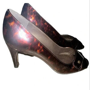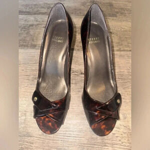 STUART WEITZMAN Heels / Pumps TORTOISE Cross Strap - Sz 8.5 M Preowned