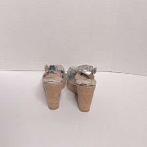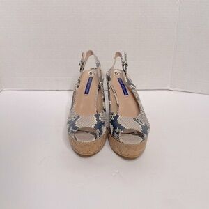 STUART WEITZMAN JEAN SNAKE EMBOSSED LEATHER SLINGBACK WEDGE SANDAL SIZE 6.5