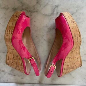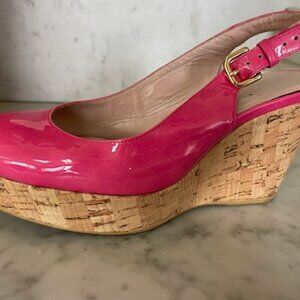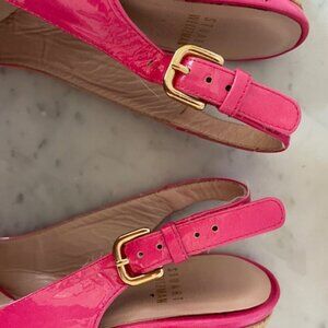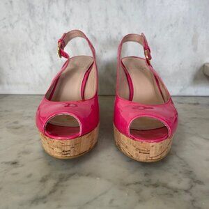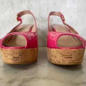 STUART WEITZMAN Jenny Fuchsia Peep Toe Sling Back Cork Wedge 6M