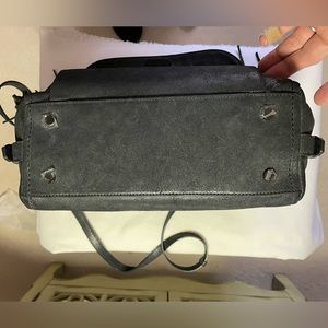 STUART WEITZMAN LEATHER SATCHEL Black Black/gray/gold colored hardware.