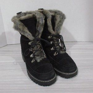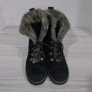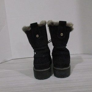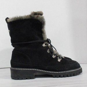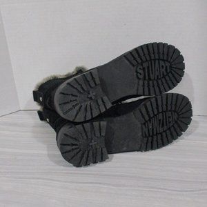 BEAUTIFUL STUART WEITZMAN LUGE BLACK SUEDE BOOTS! WARM FUR LINING. LACE FRONT. CUFFABLE. SLIP-RESISTANT TREAD FOR STABILITY. INITIALED SILVER BUTTON ON BACK BEAUTIFUL CONDITION!