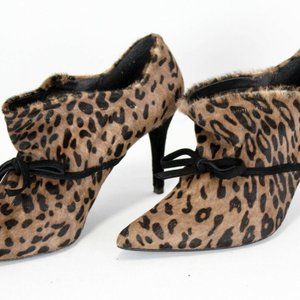 STUART WEITZMAN Leopard Aok Booties Serval Hair Suede Heel Ankle Boots 7.5