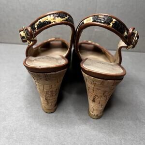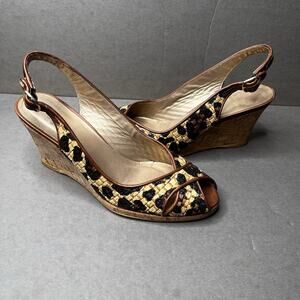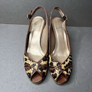 STUART WEITZMAN Leopard Wedges Women Sz 8.5N Sling Back Tan Black Peep Toe Heels
