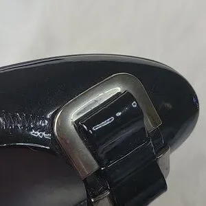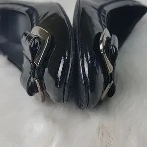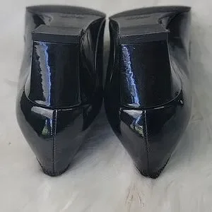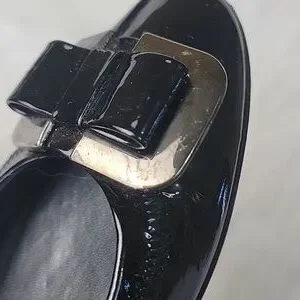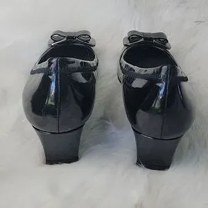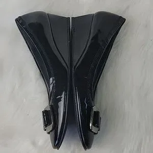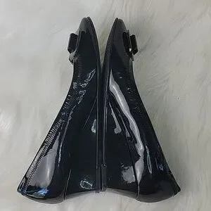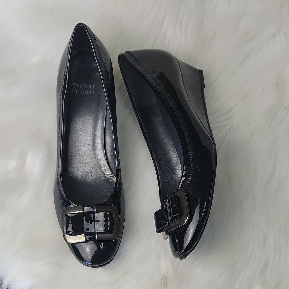 STUART WEITZMAN Madam Bow Black Patent Metal Bow Wedge Party Office Heels 8.5N