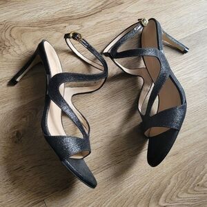 STUART WEITZMAN Mariposa Glitter Leather Sandals Black Women's 7.5 Strappy