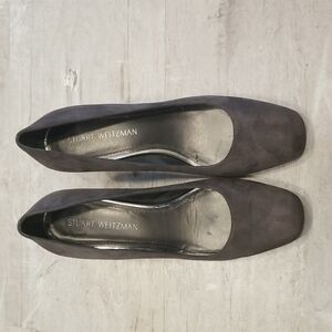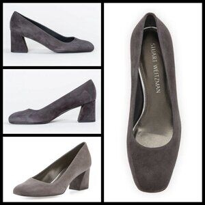 đź’•STUART WEITZMANđź’• Marymid Suede Block-Heel Pumps ~ Grey Size 9