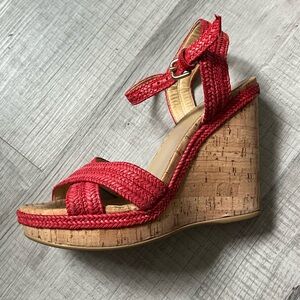 STUART WEITZMAN Minx Espadrille Cork Raffia Red Wedge Sandals 6.5