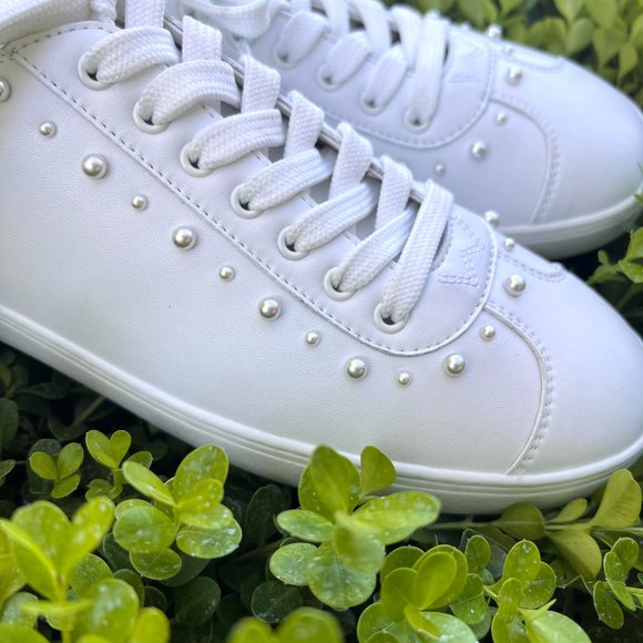 STUART WEITZMAN - NWOT Women's Faux-Pearl Studded Leather Sneakers - Size 11