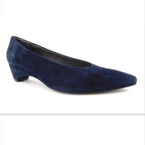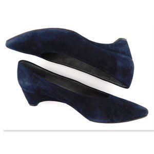 STUART WEITZMAN Navy Blue Suede Chunk Heel Pumps 6