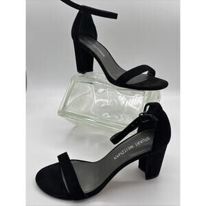 STUART WEITZMAN ‘NearlyNude’ Ankle Strap Black Suede Heels Women’s 8M $398