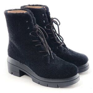 STUART WEITZMAN Nisha Chill Shearling Bootie Black Platform Lace Up