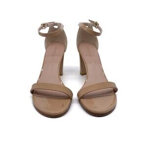 STUART WEITZMAN Nudist 75 Block Heel Sandal Patent Nude 9.5