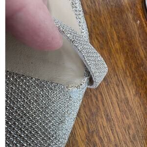 New, pallet purchase item, no tags, no box, I pulled the Nordstrom Rack tag off the bottom of the shoe, there is a small place on the toe that looks like the fabric is pulling back but minor flaw