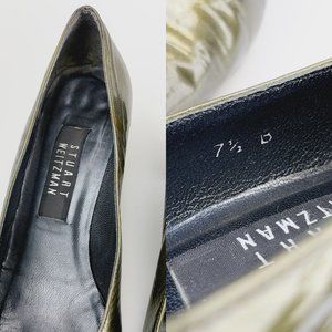 STUART WEITZMAN Olive Green Patent Leather Pump Heels 7.5 Block Heel Pointed Toe