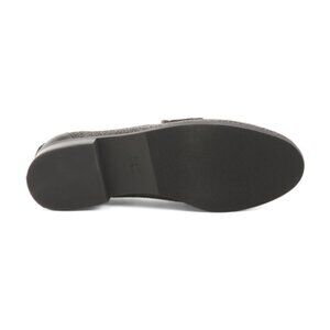 braided raffia design, pebbled accents, low block heel, gold tone horsebit inspired detail