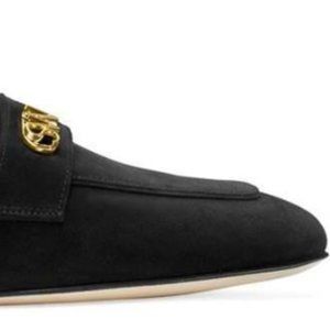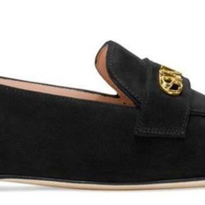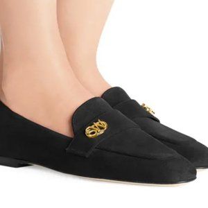 STUART WEITZMAN "PAYSON" BLACK SUEDE LOAFER LOGO FLATS IN SIZE 7.5 M INCLUDE DUST BAG MADE IN SPAIN HAVE THE MATCHING SHOULDER BAG ( SEE LISTING)